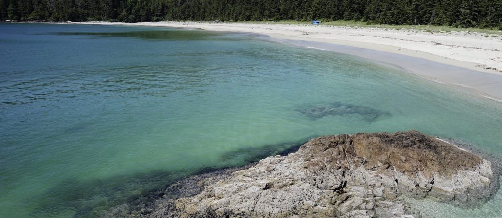 An isolated bay on the north side of Quatsino Sound, Grant Bay is long, remote, and sandy beach accessed by an easy 10-minute walk. Surrounded by rocky shores, this white sand beach is as beautiful as it is alluring.