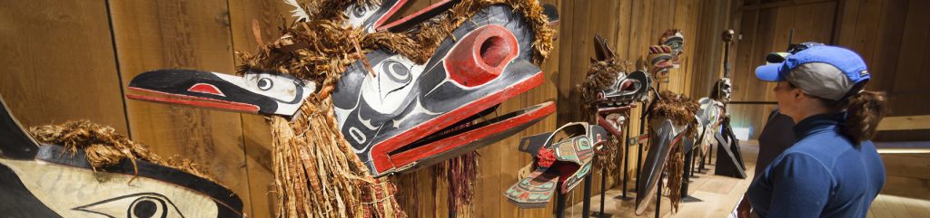 The potlatch was banned in Canada between 1885 and 1951. The masks and other regalia that you see at the U’mista Cultural Centre were all confiscated after an illegal potlatch in 1921. After the ban was lifted, the Kwakwaka’wakw people fought for decades for the return of their sacred regalia that had ended up in museum and private collections around the world. Most of the regalia has come home and it is shown at the U’mista Cultural Centre and at the Nuyumbalees Museum.